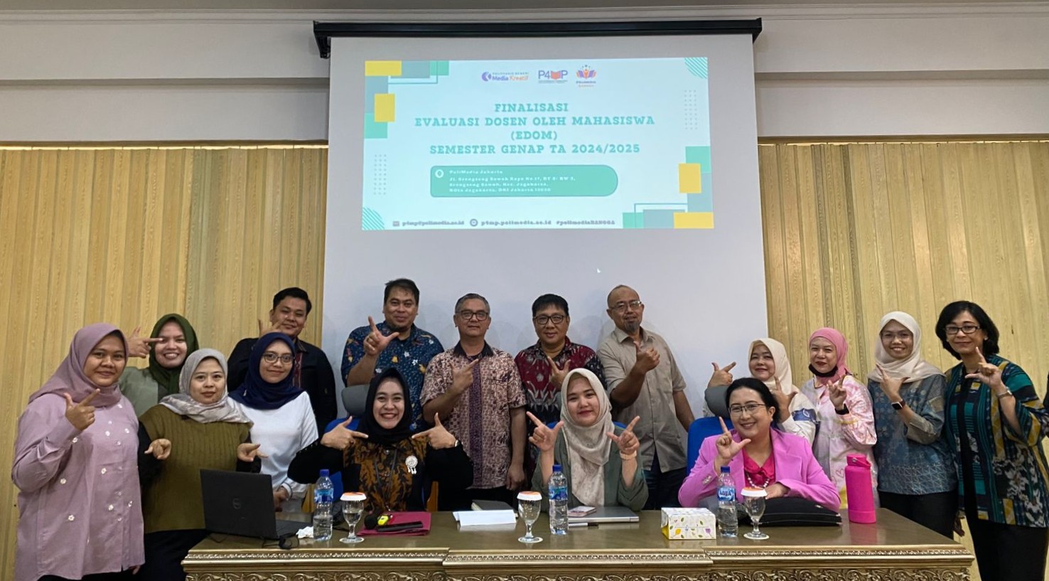 27/10/2025 admin.p4mp Post in Home Leave a Comment on Finalisasi EDOM Semester Genap Tahun Akademik 2024/2025 Finalisasi EDOM Semester Genap Tahun Akademik 2024/2025 Politeknik Negeri Media Kreatif (Polimedia) melalui Pusat Penjaminan dan Pengembangan Mutu Pendidikan (P4MP) melaksanakan kegiatan Finalisasi Evaluasi Dosen oleh Mahasiswa (EDOM) Semester Genap Tahun Akademik 2024/2025 pada 29 Juli 2025 bertempat di Ruang Rapat PoliMedia Hotel Lantai 2. Kegiatan ini… Continue Reading