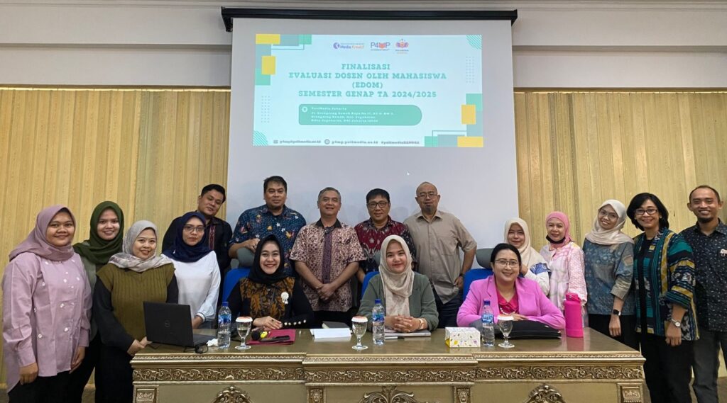 Finalisasi EDOM Semester Genap Tahun Akademik 2024/2025 27/10/2025 admin.p4mp Post in Home Politeknik Negeri Media Kreatif (Polimedia) melalui Pusat Penjaminan dan Pengembangan Mutu Pendidikan (P4MP) melaksanakan kegiatan Finalisasi Evaluasi Dosen oleh Mahasiswa (EDOM) Semester Genap Tahun Akademik 2024/2025 pada 29 Juli 2025 bertempat di Ruang Rapat PoliMedia Hotel Lantai 2. Kegiatan ini dihadiri oleh para Wakil Direktur, Ketua Jurusan, Tim P4MP, serta Tim ICT Polimedia. Tujuan dari kegiatan ini adalah untuk memastikan seluruh data hasil EDOM telah terverifikasi dengan baik dan dapat digunakan sebagai dasar dalam peningkatan mutu proses pembelajaran di Polimedia. Melalui kegiatan finalisasi ini, diharapkan hasil EDOM dapat memberikan gambaran yang objektif mengenai kinerja dosen dan kualitas layanan akademik, sekaligus menjadi acuan dalam penyusunan strategi peningkatan mutu pendidikan di lingkungan Polimedia.